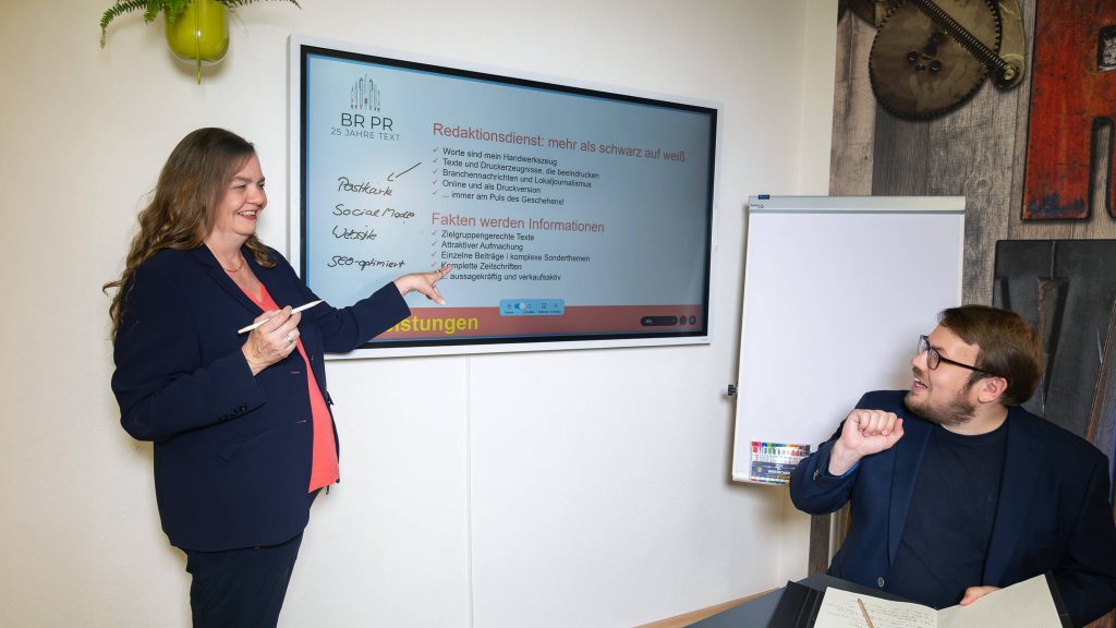 Von der PR-Agentur kannst du höchste journalistische Kompetenz, Klarheit in der Beratung und die erfolgreiche Umsetzung der gemeinsam vereinbarten Öffentlichkeitsarbeit erwarten. Selbstverständlich sind Marketing unterstützende Maßnahmen: